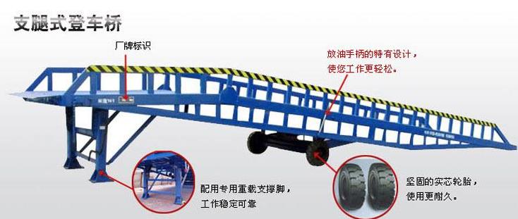 2、支持是登車橋操作的一項重要準備作業,應挑選平坦的地上,如地基松軟或崎嶇不平,有必要用枕木墊實后,才可進行作業。